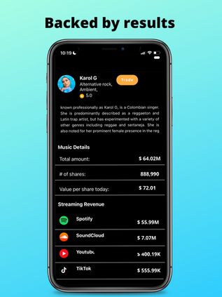 MariNation app allows you to buy, trade, and hold shares of music creators. Yes, you read that correctly. Artists are now stocks. As an artist, you connect your music revenue on the platform and create a music offer for the world. As a fan, you own shares in this music offer. Both receive percent in the success of the music moving forward and the artist makes money upfront to fund projects